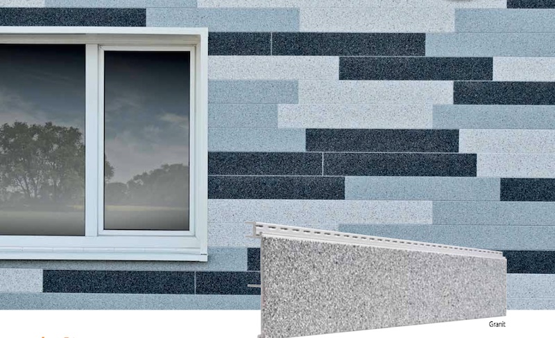 Fassadenverkleidung Kunststoff VinyStone - große Farbauwahl mit Edelputz-Optik.