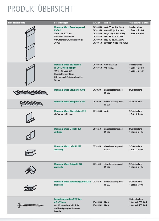 Kerrafront FS-202 Fassadenpaneele - mit passenden Zubehör-Profilen